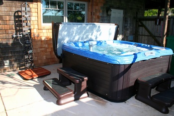 The hot tub is in an