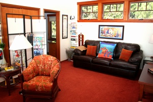 own custom bath, comfortable reading area, and views of the