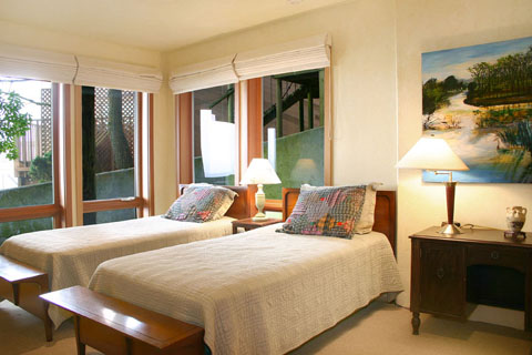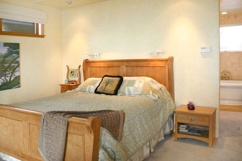 The master suit is truly a wonderful escape from the hectic city life. It offers beautiful ocean views, French doors that open onto