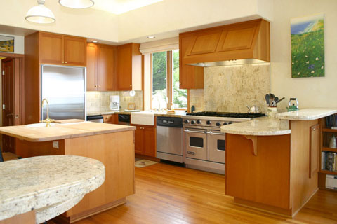 The gourmet kitchen is perfect for the "Iron Chef" of your family with granite counter tops, professional range, skylights and a wonderfully open floor plan.