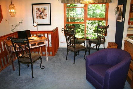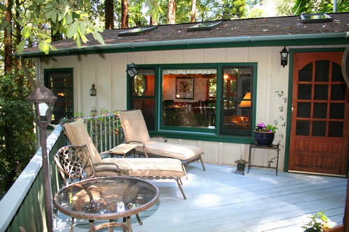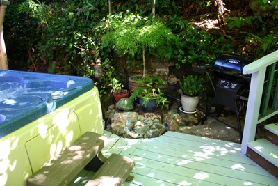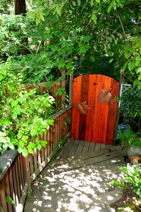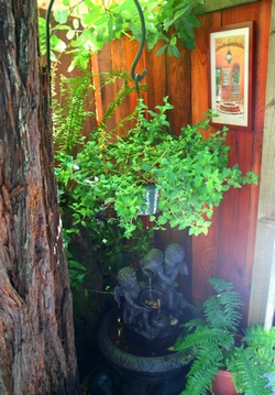 Relax under towering redwoods surrounded by lush plants and beautiful art pieces through out...