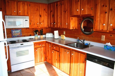 The kitchen is quite roomy and is fully stocked for all of your cooking needs,