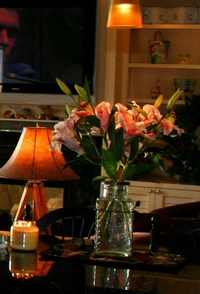private bath, gas/log fireplace, big screen TV....A perfect