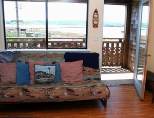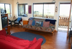 The comfy living area open to the deck and dining area. Perfect place to catch up on the day's adventures...